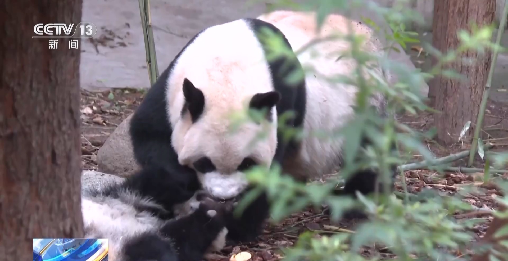 大熊猫妈妈不仅会为幼崽舔舐身体